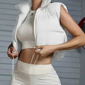 Жіночий білий жилет з кишенями повсякденний стиль верхній одяг ізастібкою-блискавкою