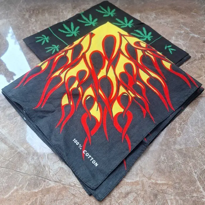 Стильна та якісна бандана-косинка, виготовлена зі 100% натуральної бавовни. Матеріал приємний на дотик і добре пропускає повітря. В наявності моделі з різними принтами (вогонь, листя). Ціна вказана за 1 штуку.