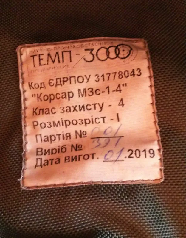 Бронежилет Темп-3000 Корсар М3с-1-4 Олива, Розмір 1, 2019 рік