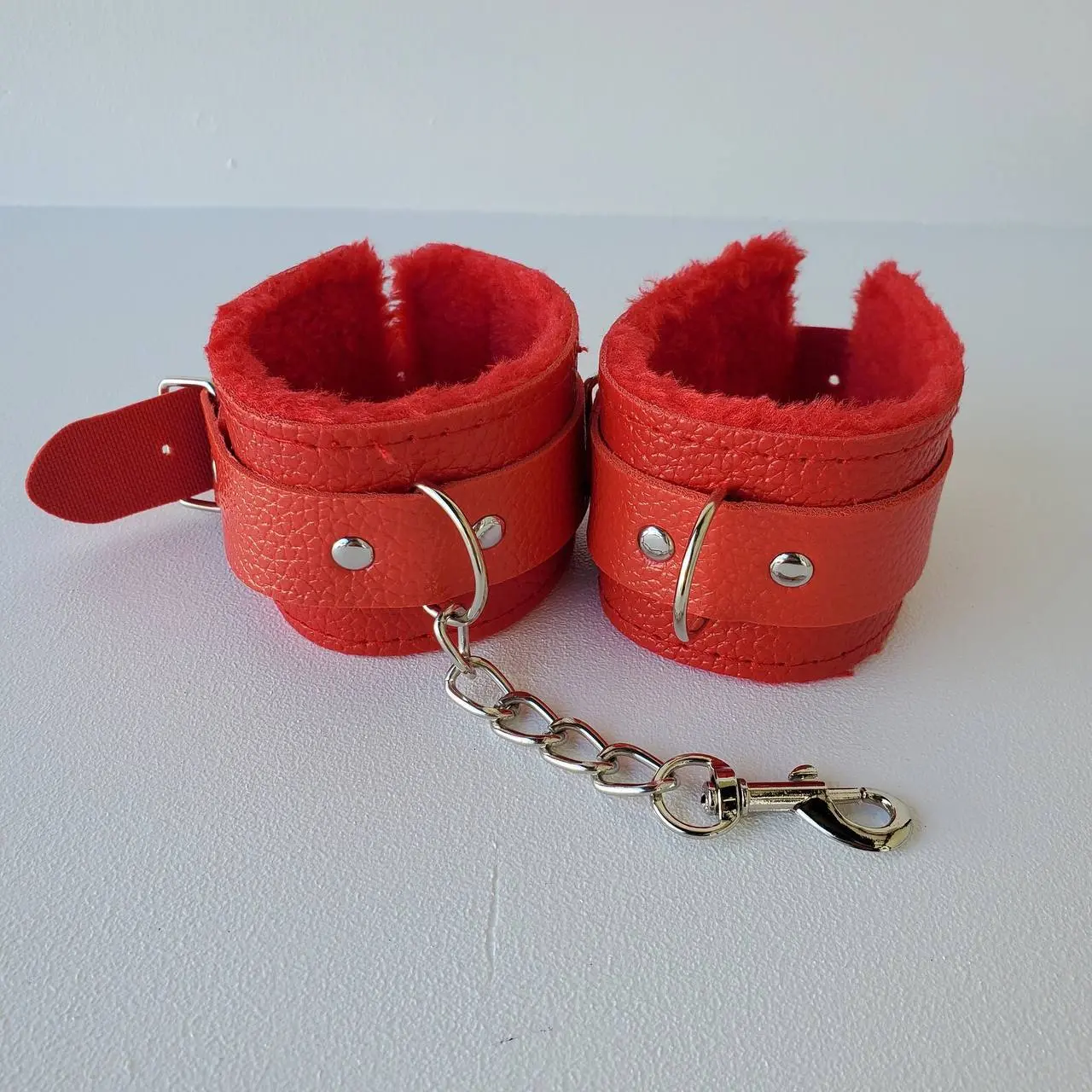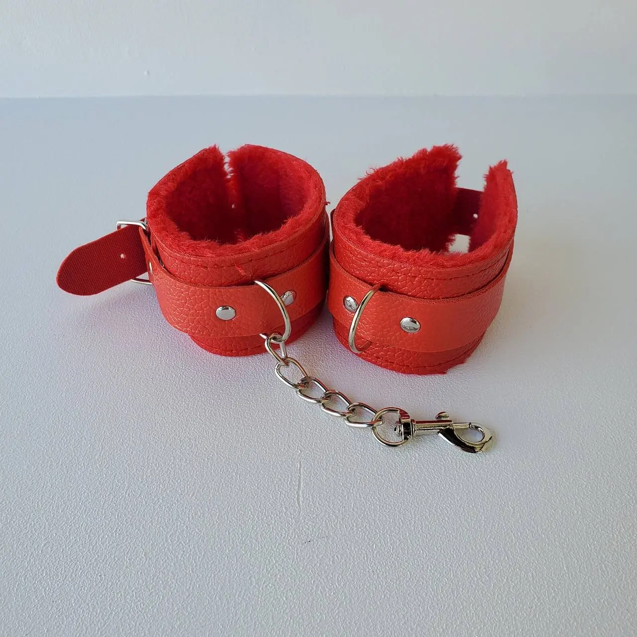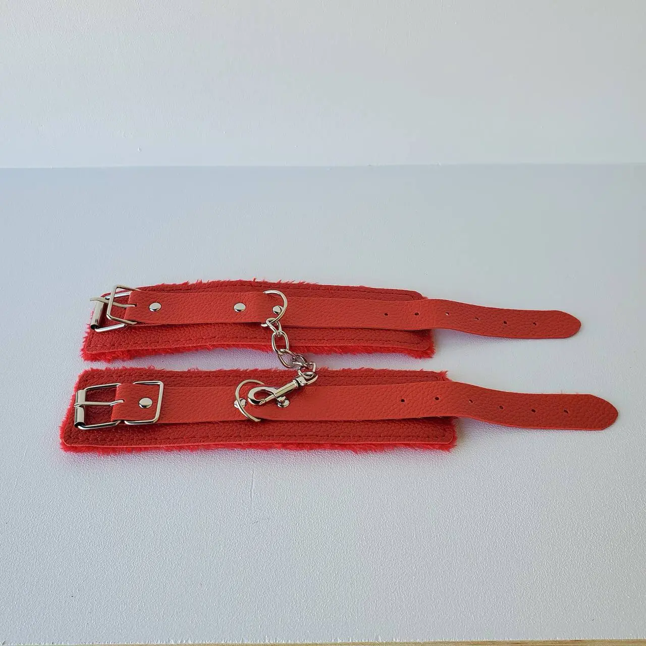 🔥 Червоні м’які наручники з ланцюжком ✅ Матеріал: штучна шкіра з м’яким хутряним підкладом ✅ Колір: яскраво-червоний ✅ Металевий ланцюжок з карабінами для надійної фіксації ✅ Регульовані ремінці — підходять для будь-якого розміру 📦 Стан: нові 💡 Ідеально підходять для рольових ігор, подарунка або колекції аксесуарів