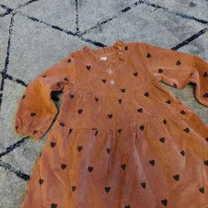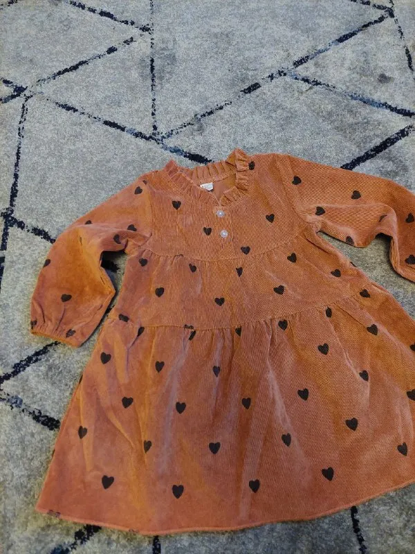 Нова дитяча вельветова сукня для дівчинки на 2 роки. Колір: теракотовий з принтом у сердечка. Заміри: довжина — 49 см, рукав — 29 см, напівобхват грудей — 30 см.