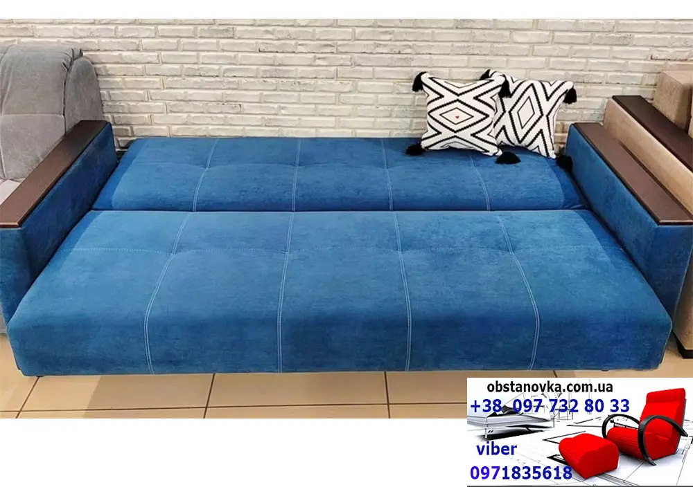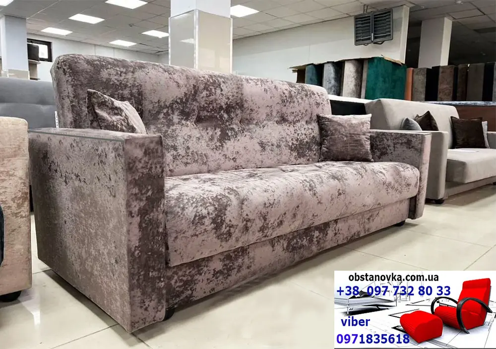 Диван-книжка Танго - одна з найпопулярніших моделей м'яких меблів через свою практичність, якість і ціну. Диван - оптимальне рішення для щоденного сну, як для дитини, так і для дорослого. Дана модель дивану на посиленому каркасі. Габаритні розміри дивана: Довжина 210 см Глибина 85 см та висота 100 см Розмір спального місця ширина 120 см і довжина 192 см. Висота спального місця 46 см. Матрац високий. 20 см. Матрац дивану підсилений на незалежному пружинному блоці "бонель". Матрац дивану складається: * посилений 5-ти витковий пружиний блок «Bonnel» (пружини не просідають під час експлуатації) * багатошарове ППУ (пенополіуретан) підвищеної щільності (апобігає просіданню матрацу часом і гарно тримає форму дивану), * термопресованний войлок (вовняна тканина, що гарно тримає тепло і не парить) * сінтепон для помякшення; *спанбонд-здатний витримувати велику вагу, не втрачаючи цілісності та не піддаючись деформації, що захищає внутрішнє наповнення матрасу від подходження і розриву від надмірного аюо не равномірного навентаження; * технічна тканина на хб основі (щоб не парив матрац); * основна тканина оббивки. По всій довжині дивана місткий ящик для білизни. Механізм трансформації: книжка. Каркас дивану-екологічно чисте дерево хвойних порід. Дивани підтримуються у складській програмі. Маленькі подушки, при бажанні, додатково і не входять у вартість дивану. Фабрична гарантія на диван 18 місяців. Здійснюємо доставку по всій Україні.