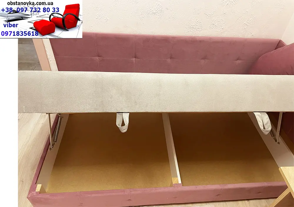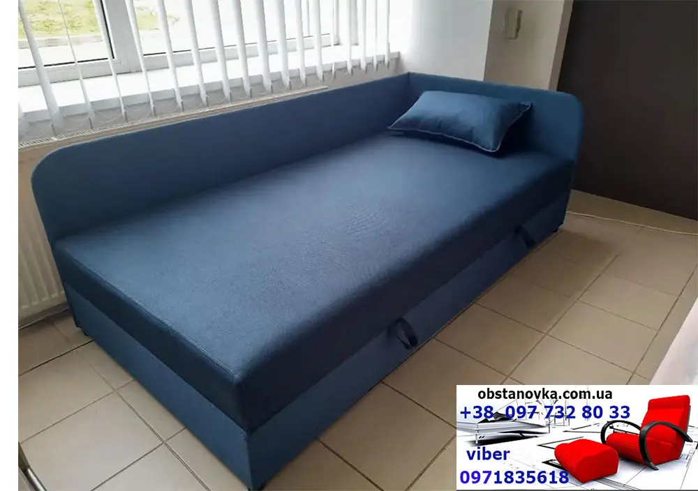 Ліжко Ліра - якісний односпальний диван для повсягденного сну на підйомному механізмі дитині і дорослому. Ліжка підтримуються у складській програмі. Диван має високий зручний матрас "антихолод" . на основі пружинного блоку. Каркас дивану посилений за рахунок, так заваного, цільного брусу "золотий стандарт" 60 мм * 45 мм. Дивани ліжка виготовляються з шириною спального місця 80 см, 90 см і 100 см Габаритні розміри дивану з шириною спального місця 80 см: ціна 8 070 грн Довжина 202 см глибина 82 см. Розмір спального місця ширина 80 см довжина 200 см. Габаритні розміри дивану з шириною спального місця 90 см: ціна 8 320 грн Довжина 202 см глибина 92 см. Розмір спального місця ширина 100 см довжина 200 см. Габаритні розміри дивану з шириною спального місця 100 см: ціна 8 570 грн. Довжина 202 см глибина 102 см. Розмір спального місця ширина 100 см довжина 200 см. Диван має матрас "антихолод" - високий (20-22 см), з використанням енергозберігаючих матервалів. Матрас дивану виконаний на основі ортопедичного пружинного блоку "бонель". Пружинний блок "бонель", на відміну від інших пружинних блоків, "не просідає" під час експлуатації, Пружини у такому блоці не зчеплені між собою і не "тягнуть одна одну" при пошкодженні(просіданні) однієї з пружин. Склад матрасу: пружинний блок "бонель", пенопуліуретан (ортопедичне ППУ), щільна технічна тканина, що не пропускає холод знизу), синтапон для пом'якшення, войлок (натуральна вовняна тканина). Кровать витримує навантаження до 120 кг. Кровать має високу "посадку"- 45 - 46 см від підлоги. Система раскладки дивану на підйомному механизмі.. У комплекті з диваном йде меблева подушка. По всій довжині дивану вмістка ніша для речей і білизни, яка поділена на сектори. Великий вибір кольрової гами обивки різних за фактурою тканин. При бажанні, ліжко може бути виконано у двох кольрах: спальне місце одного нольору, а боковини і низ іншого. Дивани доставляються у розкладеному вигляді з усіма комплектуючими для збирання.