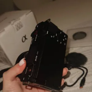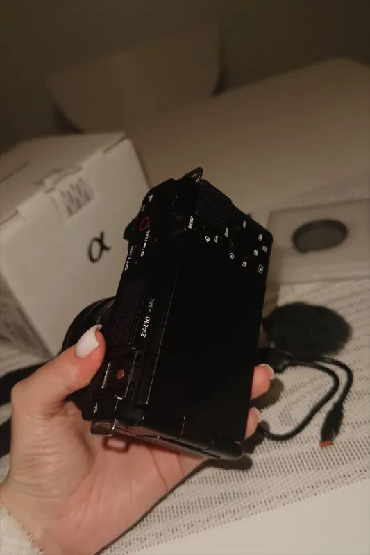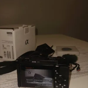 Повний комплект: камера Sony ZV-E10, об’єктив 16–50mm OSS, акумулятор, вітрозахист, ремінець, коробка, документи. Додатково: спалах Godox, фільтр на об’єктив та карта пам’яті 64ГБ.