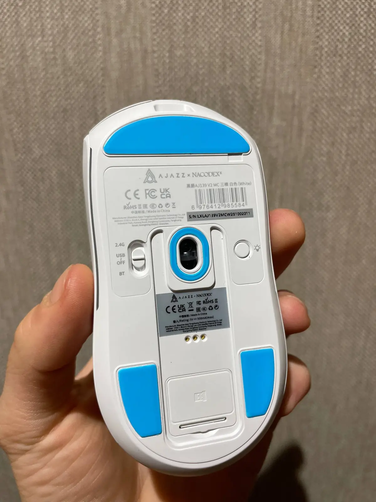 Продаю абсолютно нову ігрову мишку AJAZZ AJ139 V2 MC. Ідеально підходить для геймінгу та щоденного користування. Мишка має сучасний ергономічний дизайн, забезпечує високу точність сенсора, що чудово підходить для ігор. Бездротове підключення забезпечує стабільний сигнал. Вбудований акумулятор 500 mAh. Якісна збірка від відомого бренду AJAZZ. Мишка нова, в оригінальній упаковці, не використовувалась. Комплектація: - Мишка AJAZZ AJ139 V2 MC білого кольору з RGB підсвіткою по нижньому краю. Збоку розташовані додаткові кнопки. - Док-станція білого кольору для зарядки мишки з логотипом AJAZZ та роз'ємами Type-C. - Кабель Type-C білого кольору для зарядки та підключення. - Оригінальна коробка чорного кольору з червоними елементами та логотипом AJAZZ. На нижній частині мишки розташовані перемикач режимів (2.4G, USB, OFF, BT), віконце сенсора, кнопки та наклейки з інформацією про модель та серійний номер. Також присутні сині ніжки для кращого ковзання.