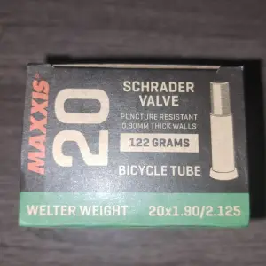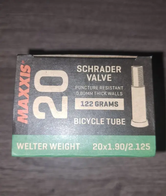 Велосипедная камера Maxxis Welter Weight для колес 20 дюймов. Размер 20x1.90-2.125, тип клапана AV (Schrader) длиной 35 мм. Толщина стенок 0.80 мм, вес 122 г. В наличии 2 шт.