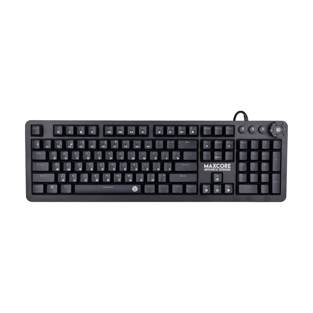 Клавіатура Fantech Max Core MK852 Blue Switch - механічна клавіатура, яка стане ідеальним вибором і для ігор, і для виконання звичайних, повсякденних завдань. Світлодіодне RGB підсвічування підкреслює привабливий зовнішній вигляд пристрою, не відволікає від роботи і робить її ще більш зручною. Корпус клавіатури надійно зібраний, виготовлений з металу і міцного ABS пластику з текстурованою поверхнею, антиковзні накладки на нижній панелі виконані з силікону. Конструкцією аксесуара передбачено наявність висувних елементів, що дозволяють розташувати його під кутом на горизонтальній поверхні. Модель має 104 клавіші, в число яких входять 12 функціональних кнопок для управління мультимедіа. Всі клавіші виконані за технологією Anti-Ghost, ресурс їх натискань становить 50 мільйонів разів. У верхньому правому куті клавіатури знаходиться регулятор для управління підсвічуванням і звуком. Вбудований кабель виконаний в нейлоновій оплітці, оснащений роз'ємом USB для підключення пристрою до комп'ютера. Вибирайте аксесуари бренду Fantech оптом вже зараз.