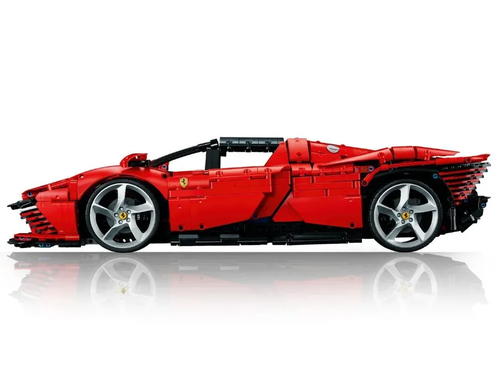 Technic 42143 Ferrari Daytona SP3 | Масштаб 1:8 Набір новий, повністю комплектний Ferrari Daytona SP3 — це частина лімітованої серії Icona, створеної на честь легендарних перегонів 60-х років. У масштабі 1:8 ця модель передає культовий італійський дизайн, агресивну аеродинаміку та справжній дух Ferrari. Це преміальний рівень Technic — велика, складна та максимально деталізована модель для поціновувачів автомобільної класики. Це не просто конструктор, а колекційний експонат, який виглядає як справжній суперкар у мініатюрі. ОСНОВНІ ХАРАКТЕРИСТИКИ Модель: Technic Ferrari Daytona SP3 Артикул: 42143 Масштаб: 1:8 Серія: Ultimate / Collector Level Кількість деталей: 3778 Матеріал: оригінальний LEGO ABS-пластик Стан: новий, всі деталі в наявності Інструкція: покрокова оригінальна Упаковка: оригінальна коробка ФУНКЦІОНАЛ ТА ДЕТАЛІЗАЦІЯ Незалежна підвіска передньої та задньої осі Деталізований двигун V12 з рухомими поршнями 8-ступенева коробка передач Керовані передні колеса Відкривні двері у фірмовому стилі Ferrari Відкривний капот та задній відсік Знімний дах Деталізований салон з червоними спортивними сидіннями Аеродинамічні елементи кузова з плавними лініями Великі спортивні диски та низькопрофільні шини У зібраному вигляді модель виглядає максимально ефектно — яскравий червоний колір, низька посадка та витончені лінії кузова роблять її справжньою окрасою будь-якої колекції. ДЛЯ КОГО ПІДХОДИТЬ Для фанатів Ferrari Для колекціонерів серії 1:8 Для поціновувачів складних Technic-моделей Для подарунка автолюбителю Для стильного декору кімнати або офісу ТАКОЖ В НАЯВНОСТІ Великий вибір моделей 1:8 та 1:10 — суперкарів, гіперкарів і класичних авто, сумісних з LEGO Technic. ПІДПИСУЙСЯ НА НАШ ТЕЛЕГРАМ-КАНАЛ t.me/+UwWVo4wOD_I2MGQy Нові надходження, живі фото, огляди та актуальні пропозиції. АКЦІЇ ТА УМОВИ Підписка на Instagram brickautoclub — знижка 5% Оплата на картку — додаткова знижка 5%