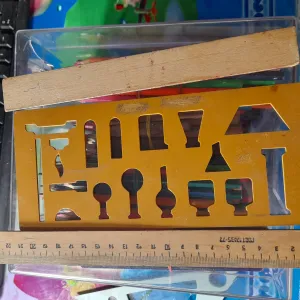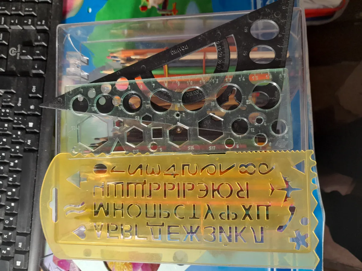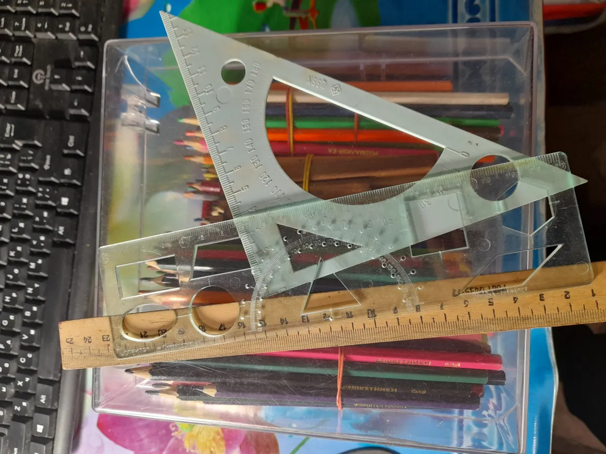 Продається набір лінійок б/у 14 шт. Різної формі, в ідеальному стані всі, крім 2 дерев' яних лінійок, на яких помітні потертості. Ціна поштучно: 5 маленьких лінійок, 3 трикутні та 2 овальні - 10 грн за шт, 6 великих лінійок, 2 трикутні та 4 прямокутні - 20 шт за шт, 1 лекало - 30 грн, 2 маленькі дерев'яні лінійки - 5 грн за шт.