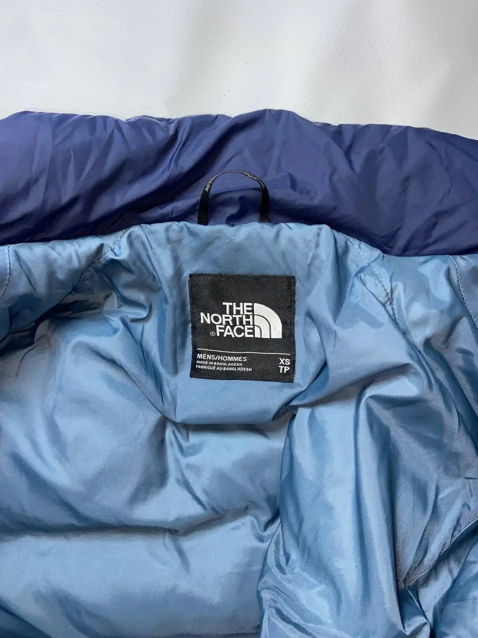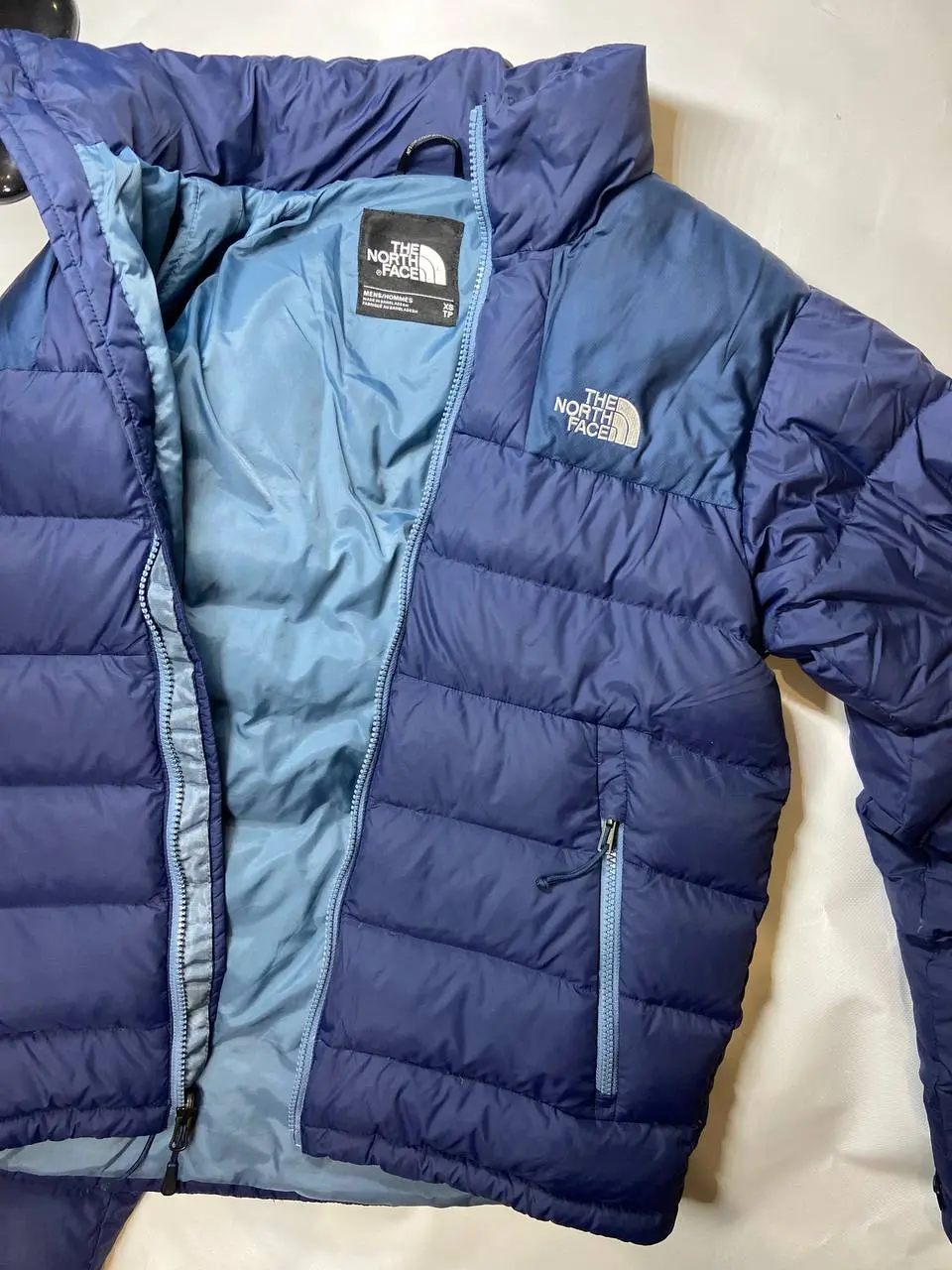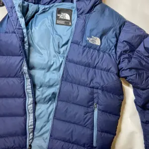 Продається пуховик The North Face 700. Стан ідеальний, оригінал. Пуховик щільно набитий пухом, дуже теплий. Колір – синій, комбінований двома відтінками синього: темнішим знизу та світлішим у верхній частині. Наявні утяжки. Розмір по бірці XS, але фактично підійде на S. Пуховик має дві зовнішні кишені на блискавках. На грудях вишитий логотип The North Face білого кольору. Ззаду на спині також вишитий логотип The North Face білого кольору. Підкладка світло-блакитного кольору. На внутрішній стороні є етикетка з інформацією про розмір та виробника. Ціна: 2700 грн