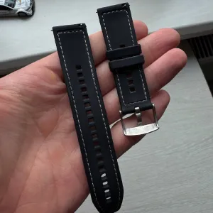 Ціна за всі - 665 грн Силіконовий (чорний)ремінець Носився місяць. 65 грн Новий шкіряний чорний ремінець з білими акцентами. 370 грн Новий тканевий тактичний ремінець чорного кольору з металевими застіжками. 230 грн 22 mm для Amazfit, Garmin, CMF, Huawei, Coros, Suunto, Xiaomi, Fossil, Honor, Fitbit, Samsung.