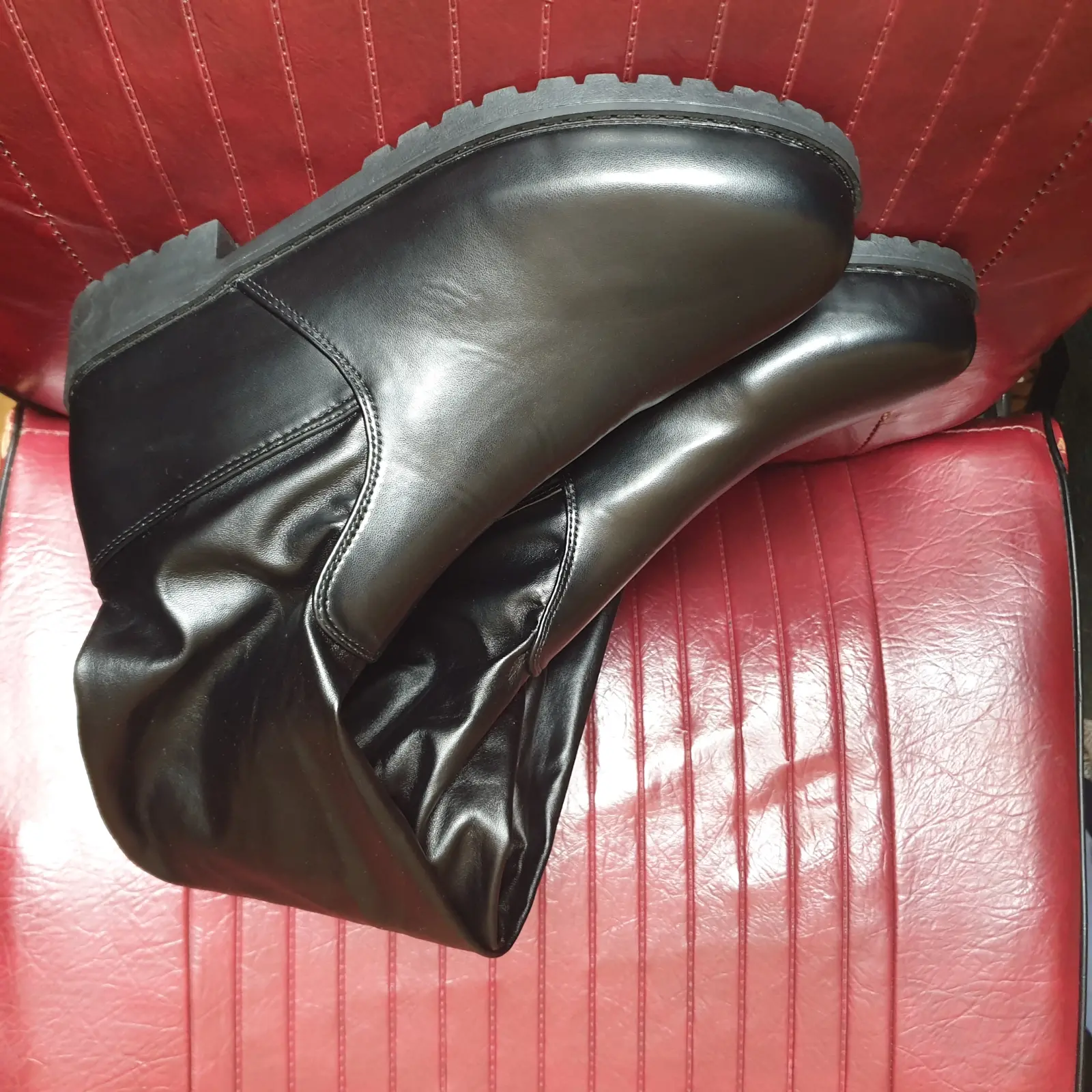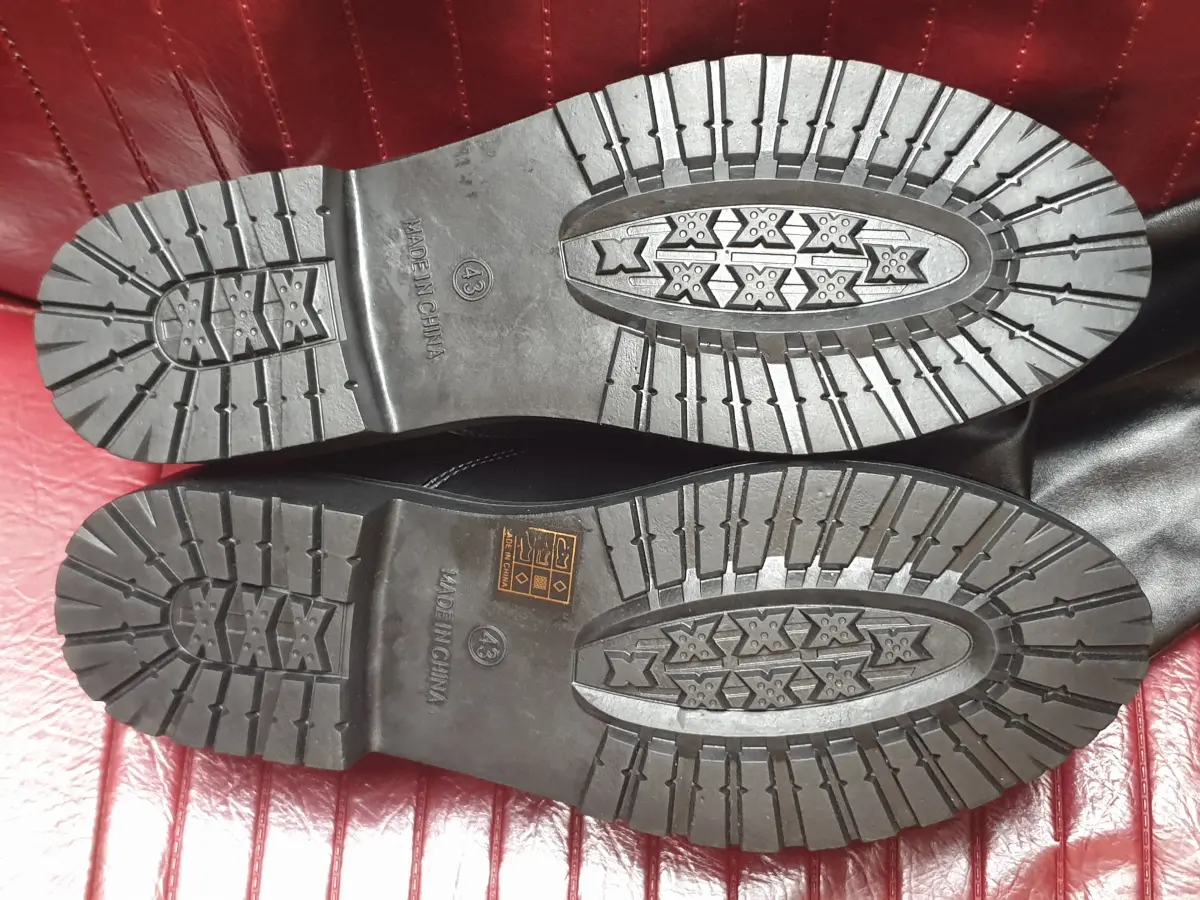 Сапоги-чулки (ботфорты) из на плоской проектированной подошве с невысоким каблуком. Голенище тянется и облегает ногу. Маломеры - размер указан 43, но рекомендуются на 41. Длина стельки 26,5 см Высота голенища 57 см Высота каблука 3,5 см Доставка Новой почтой