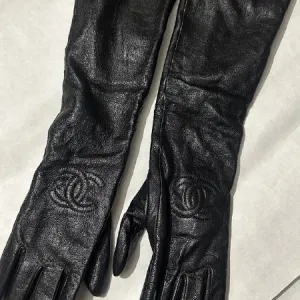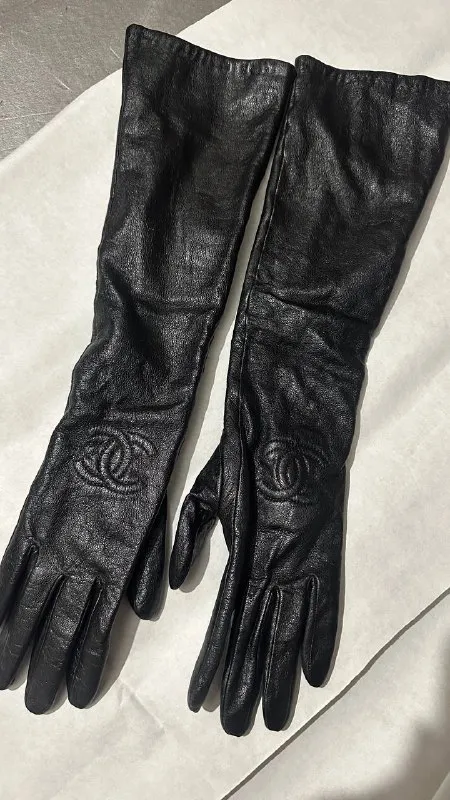 Елегантні шкіряні рукавички до ліктя в стилі Chanel. Стан нових, утеплені, дуже теплі. Модель розрахована на худеньку ручку. Колір чорний.