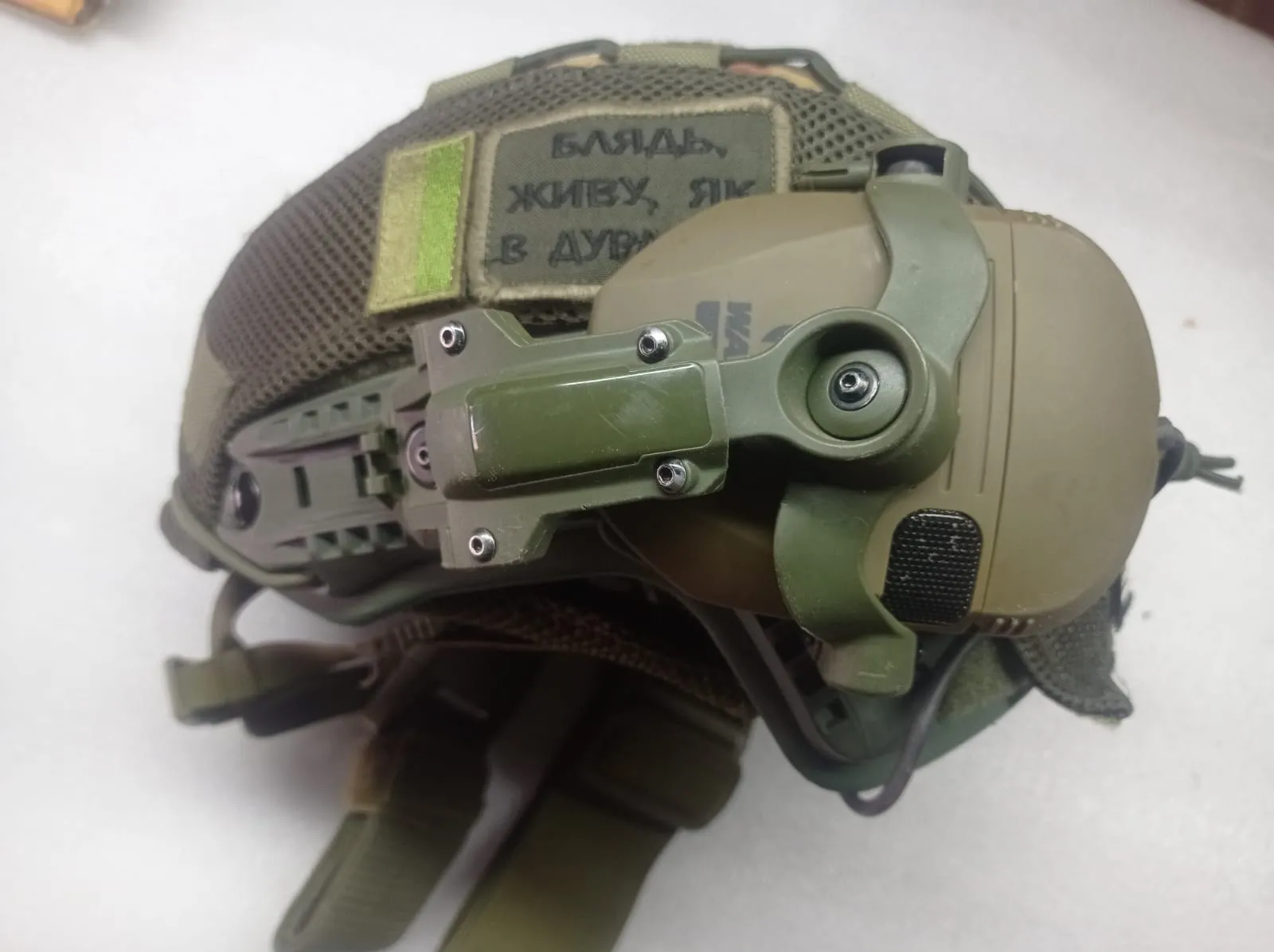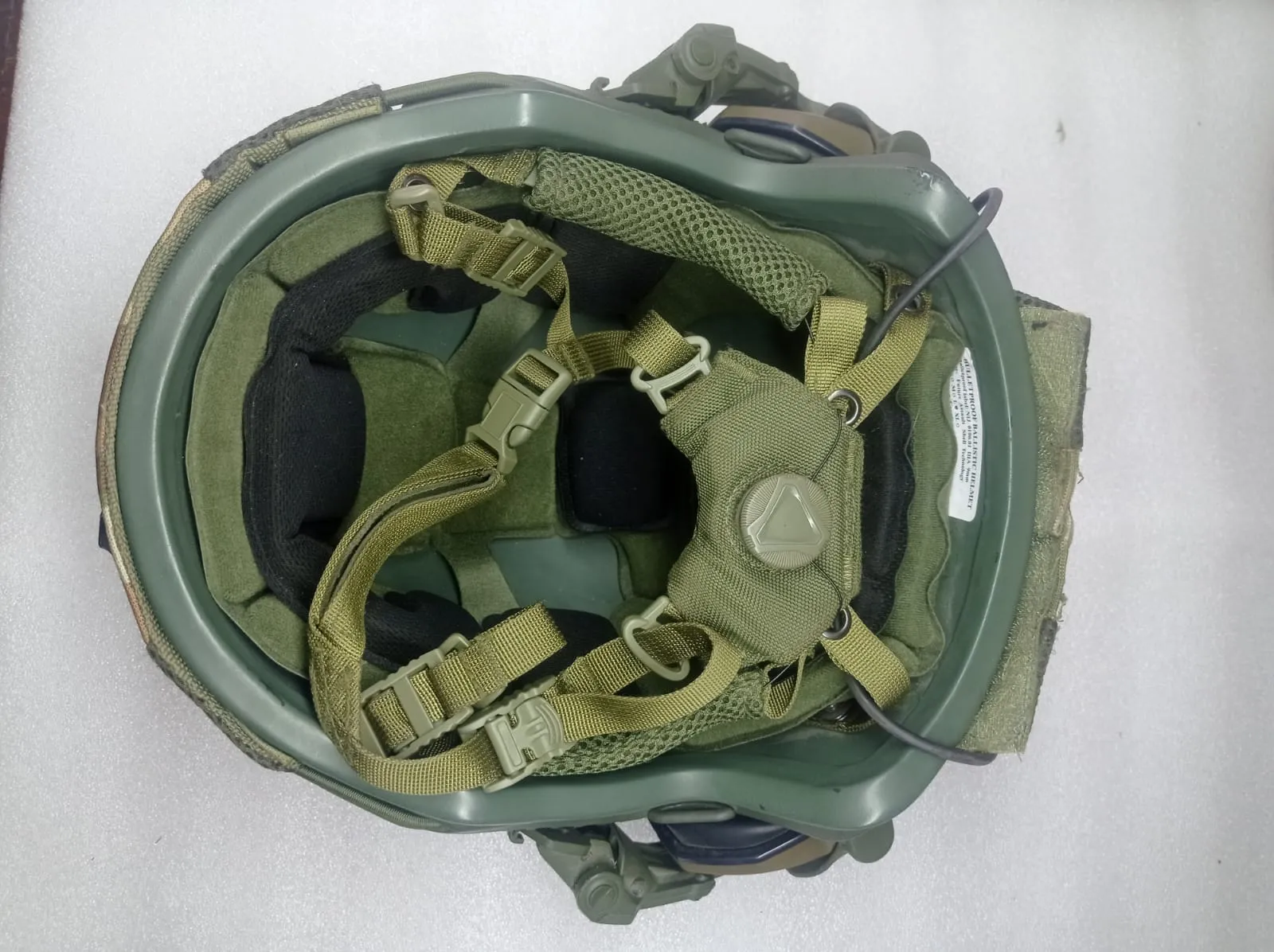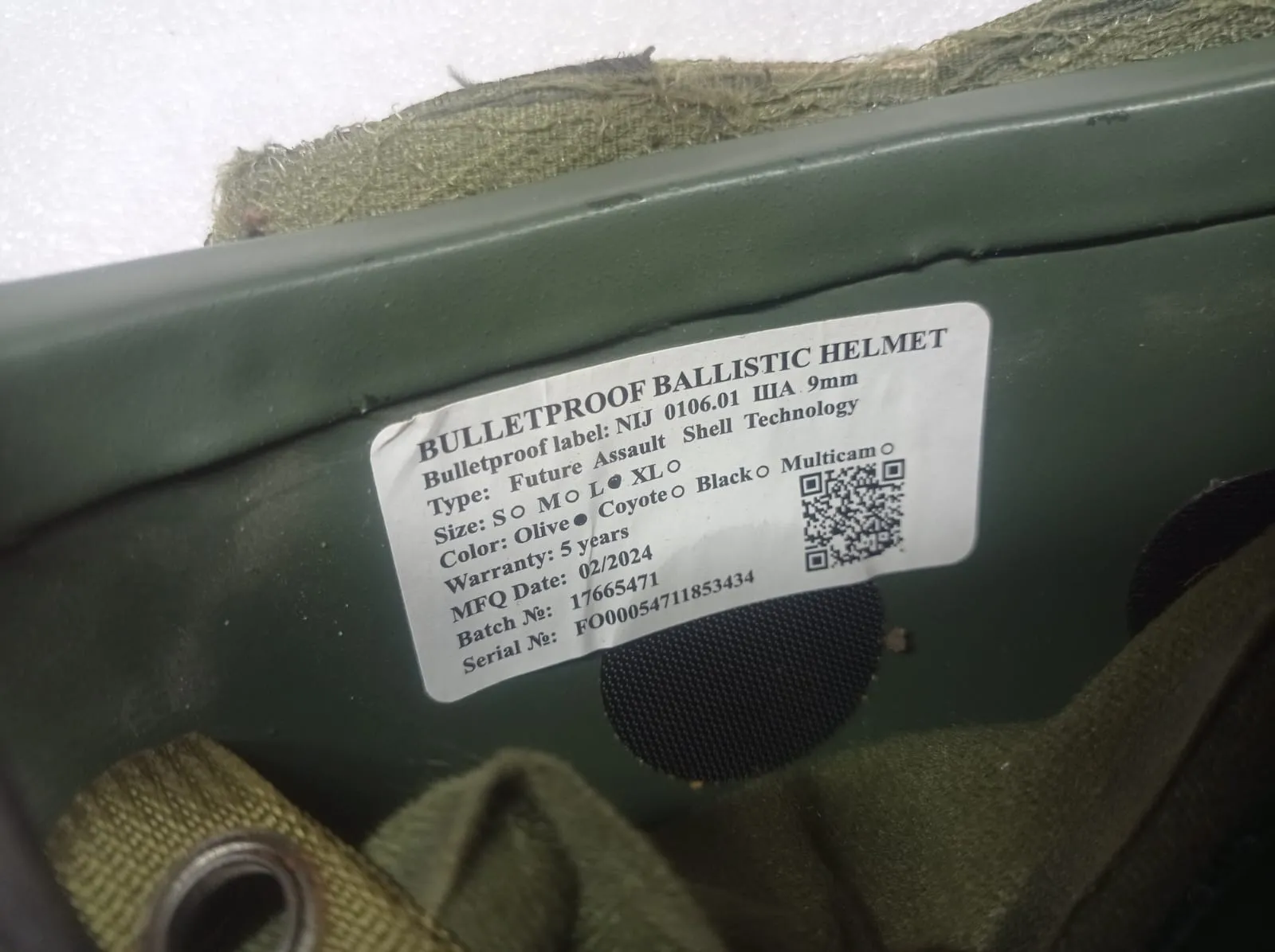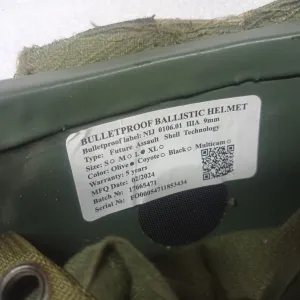 Класс защиты: NIJ IIIA (9мм). Размер: L/XL (регулируемый). Дата выпуска: 02/2024. Цвет: Олива (Olive). Комплектация: Активные наушники на креплениях «чебурашках». Кавер в расцветке Multicam с велкро-панелями и сеткой. Подвесная система с регулировочным роликом и мягкими демпферами. Эластичные шнуры и патчи. Состояние: Отличное, механизмы исправны, купол без повреждений.