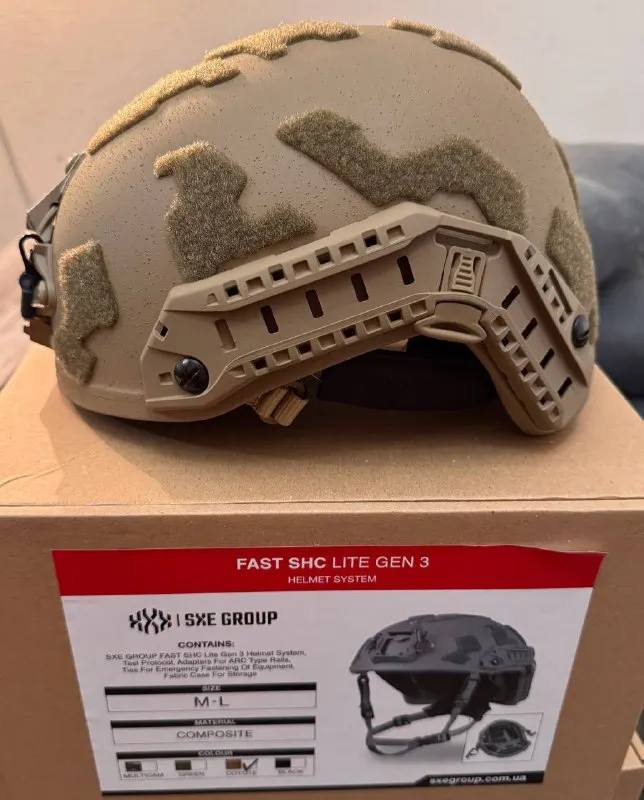 Нові шоломи в коробках. SXE Group Lite (1кг, M/L) у кольорах coyote, od-green, multicam та Buran (1.4кг). Варіанти та ціни: Buran — 16000 грн, SXE Group Lite — 35000 грн. Зручні, порівнянні з Ops-Core. Накладений платіж.
