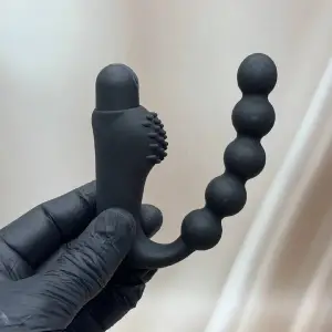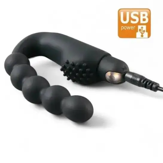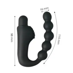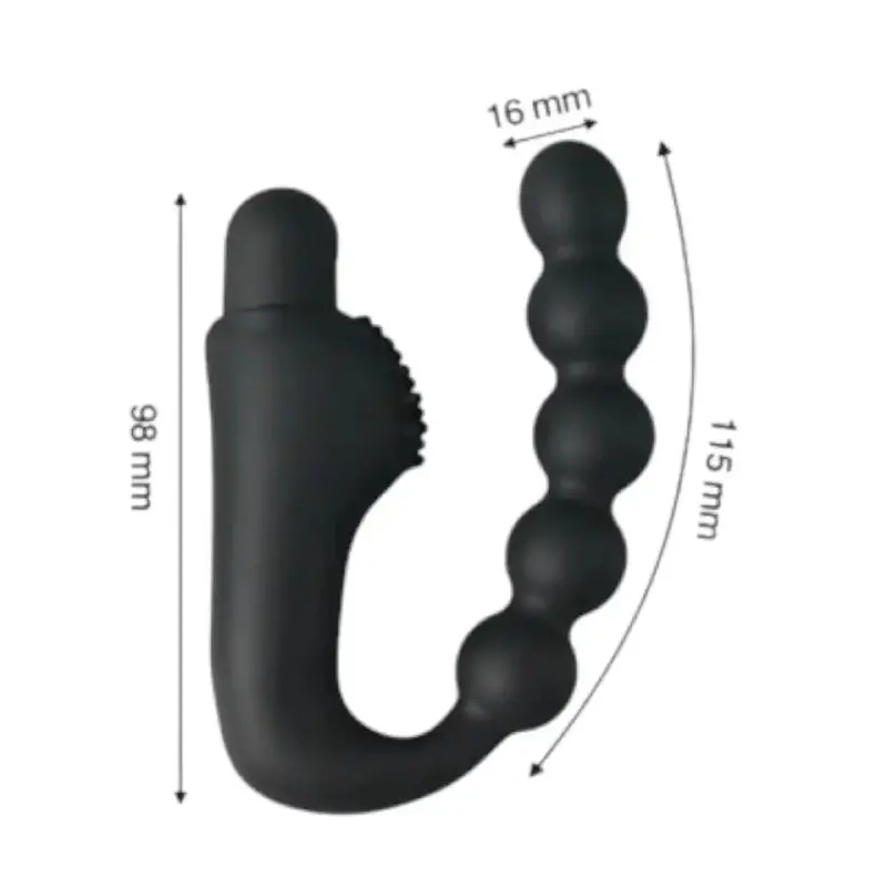 Ергономічний масажер 2 в 1: стимуляція простати та анальна стимуляція ланцюжком з 5 кульок. Потужна вібрація, гіпоалергенний медичний силікон, USB-зарядка та вологозахист. Розміри: висота 98 мм, довжина кульок 115 мм, діаметр 16 мм. Артикул: 1075.