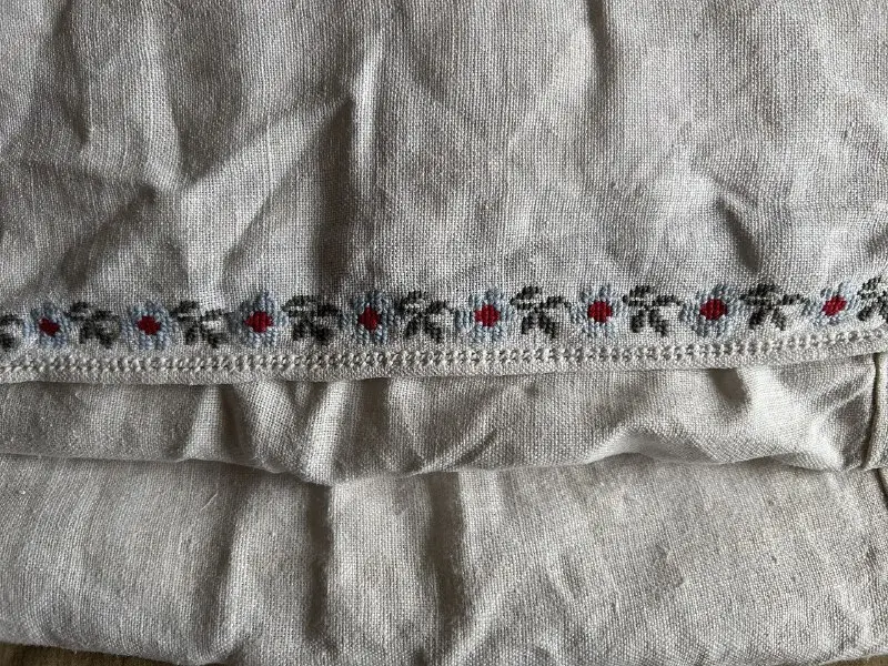 Вінтажна вишита сорочка середини 20 ст. з Полтавщини. Ручна робота, щільне домоткане лляне полотно. Довжина 117 см, напівширина 75 см. Вишивка хрестиком, оригінальний ґудзик. Проведена мінімальна реставрація. Знаходиться в м. Одеса, можлива відправка або самовивіз.