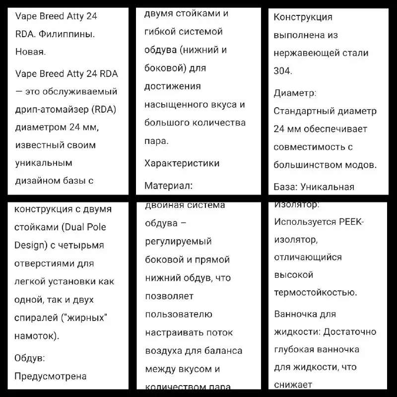 Новая дрипка Vape Breed Atty 24 RDA (Филиппины). Диаметр 24 мм, сталь 304, двойной обдув. В комплекте ремкомплект и спирали Fussed Clapton. Находится в г. Полтава. Отправка любой почтой после полной оплаты или через ОЛХ доставку. В ноль не отправляю.