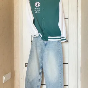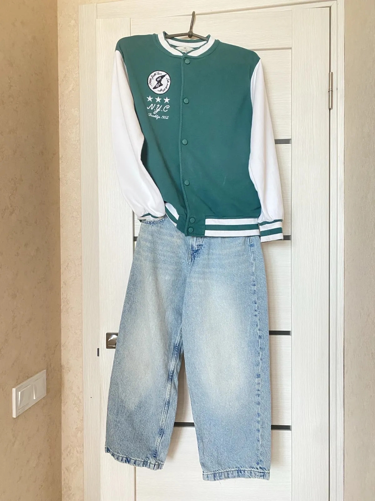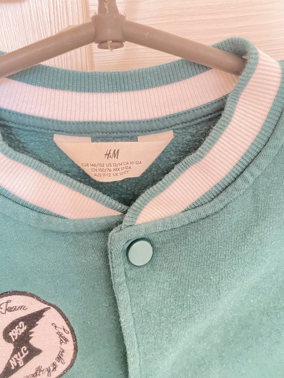 Легка весняна куртка на флісі у стилі varsity — зручна для школи та прогулянок. Стильний дитячий бомбер від H&M у спортивному стилі "Athletic Youth Team 1932 NYC Brooklyn". Особливості: • Зелений корпус з білими рукавами • Класичний varsity-дизайн з емблемою та написом "NYC Brooklyn 1932" • Застібка на кнопки • Еластичні манжети та низ • Матеріал: хлопок на флісі Розмір: EUR 146/152 (на зріст 146-152 см, приблизно 11-12 років) Бренд: H&M Стан: ідеальний 10/10 Ідеально підходить для створення молодіжного спортивного образу. Якісний матеріал забезпечує комфорт та довговічність.