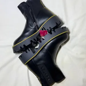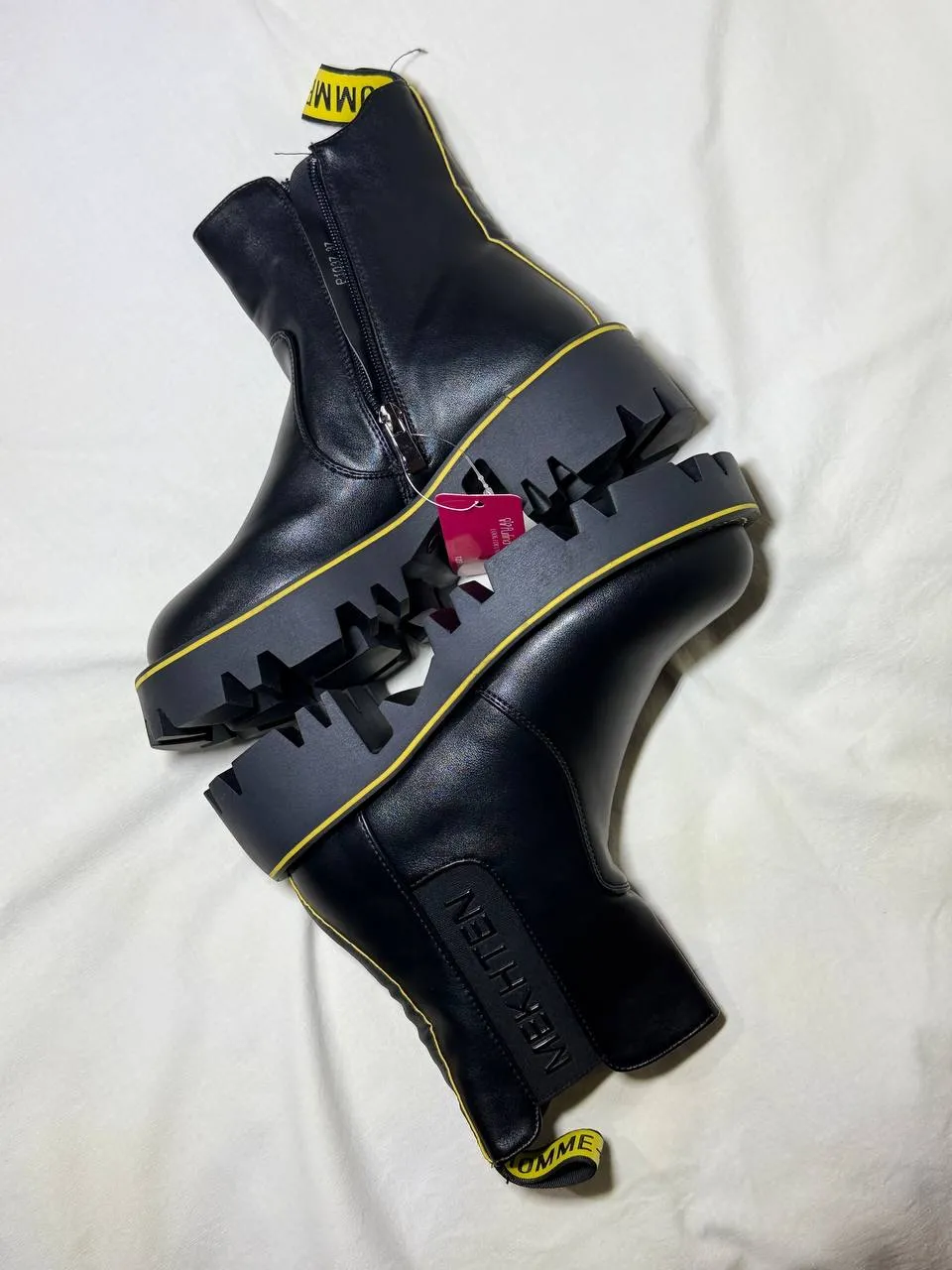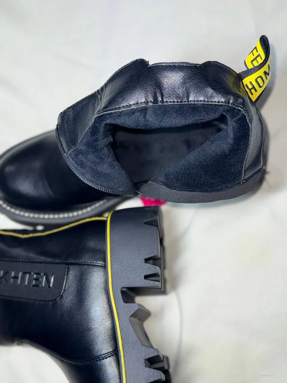 Розмір: (36,37,38,39) Стан: нові, з біркою Матеріал верху: еко-шкіра високої якості Підкладка: демісезонна, м’яка та комфортна Підошва: массивна тракторна платформа, легка, не слизька Застібка: мінімалістична блискавка збоку 📌 Дуже стильна модель — чорна база + контрастні жовті акценти 📌 М’який ход, зручні для щоденного носіння 📌 Сучасний дизайн у стилі street style / urban 📌 Підошва додає зросту, але взуття залишається легким 📌 Ідеально виглядають із джинсами, штанами, оверсайз куртками, худі