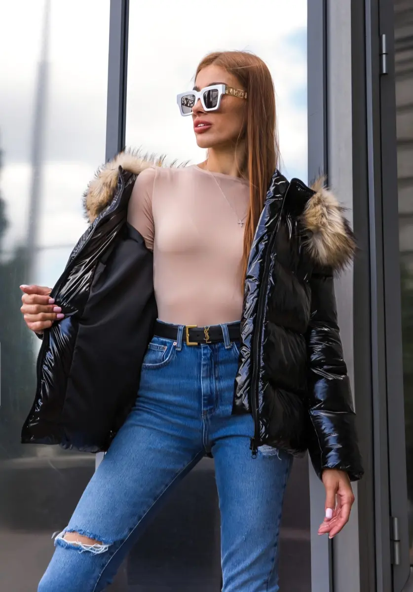 Короткая стеганая модель из лаковой плащевки — стильное решение для холодного сезона. Куртка выполнена на молнии, с вшитым капюшоном и опушкой из эко-меха под енота, что придаёт образу современный и элегантный вид. Особенности модели: прямой силуэт с регулируемой кулисой по низу; втачной рукав для удобной посадки; центральная застёжка на молнию; два практичных боковых кармана; подкладка для дополнительного комфорта; утеплитель – холлофайбер, надёжно сохраняющий тепло при температуре до –15°…–20°С. Состав: 100% полиэстер Такая куртка станет универсальной базой зимнего гардероба и идеально подойдёт для активного городского ритма.