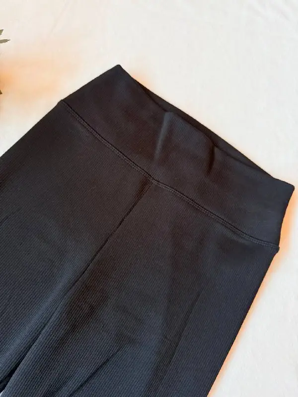 Женские лосины в рубчик на флисе черные, размер S