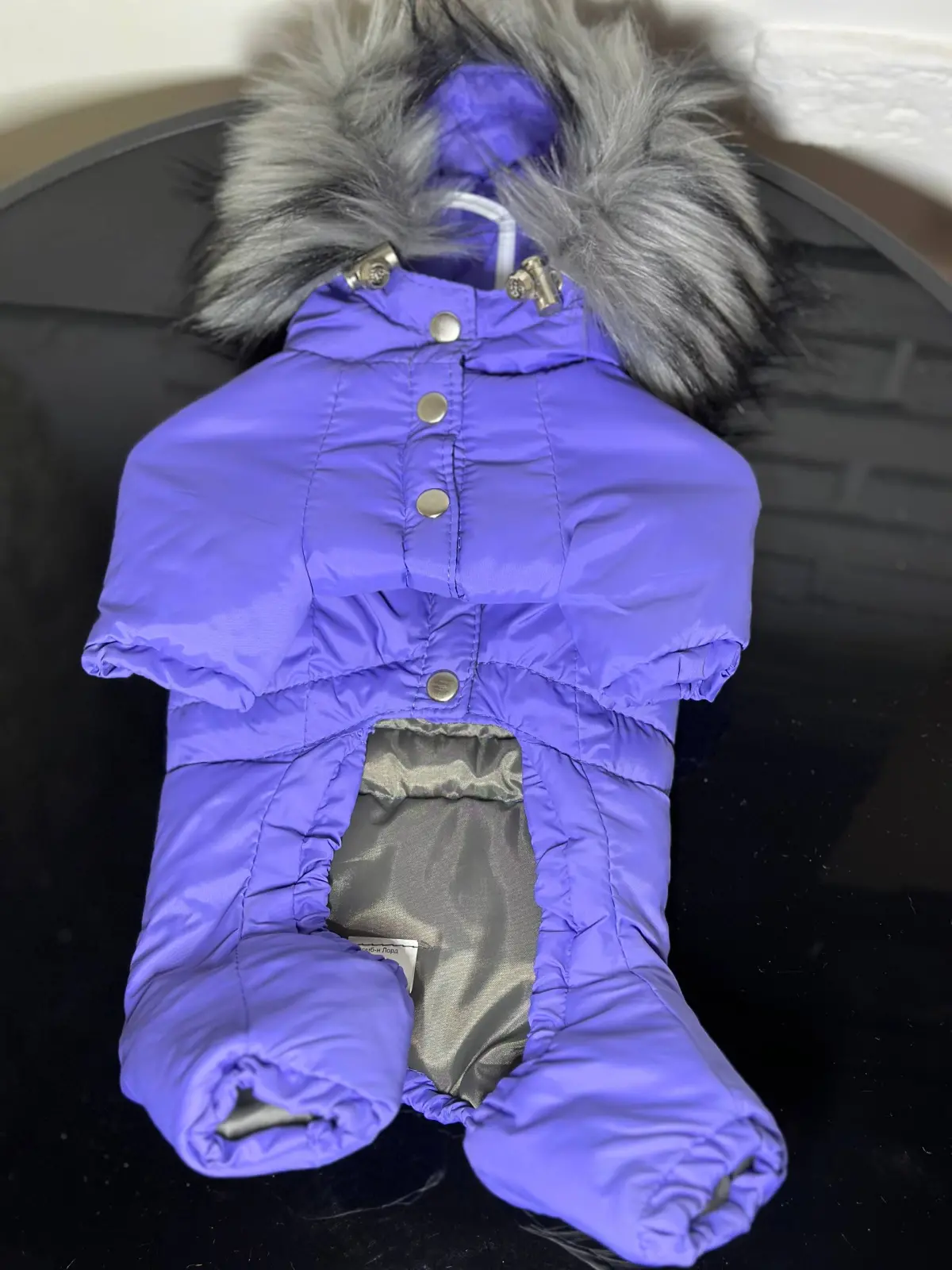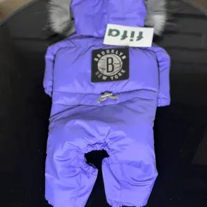 Продається новий зимовий комбінезон для маленької собаки. Розмір S, підійде для песиків вагою до 3 кг. Колір комбінезону - ніжно-фіолетовий. Комбінезон має капюшон, оздоблений штучним сірим хутром. На спині комбінезону є нашивка із написом "BROOKLYN NEW YORK" у вигляді баскетбольного логотипу. Застібається комбінезон на кнопки, розташовані на животику. Внутрішня підкладка сірого кольору. На капюшоні також є сріблясті регулятори. На комбінезоні присутня бірка бренду "fiffa". На спині є декоративна застібка сріблястого кольору. Продається у зв'язку з розпродажем зоомагазину. В наявності також є інший одяг, повідці, засоби обробки та смаколики для тварин. Ціна: 600 грн